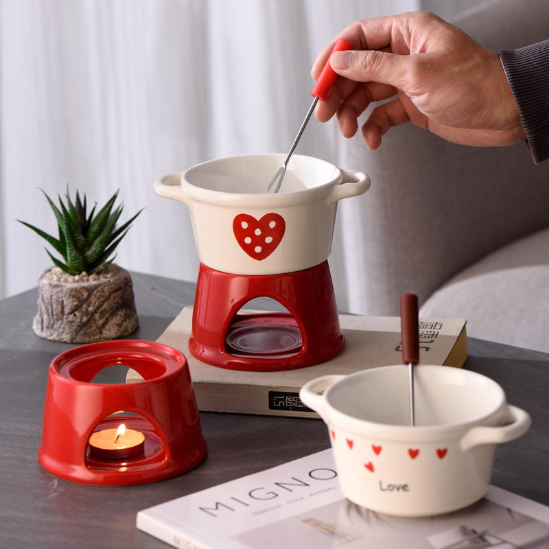 Olla de Porcelana Creativa con Doble Asa para Calentar Sopa, Chocolate y Queso, Apta para Lavavajillas y Microondas