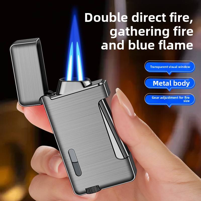 Encendedor Creativo de Doble Llama, Resistente al Viento, Llama Azul, Recargable con Butano, Diseño Moderno, Popular en TikTok, Gran Venta