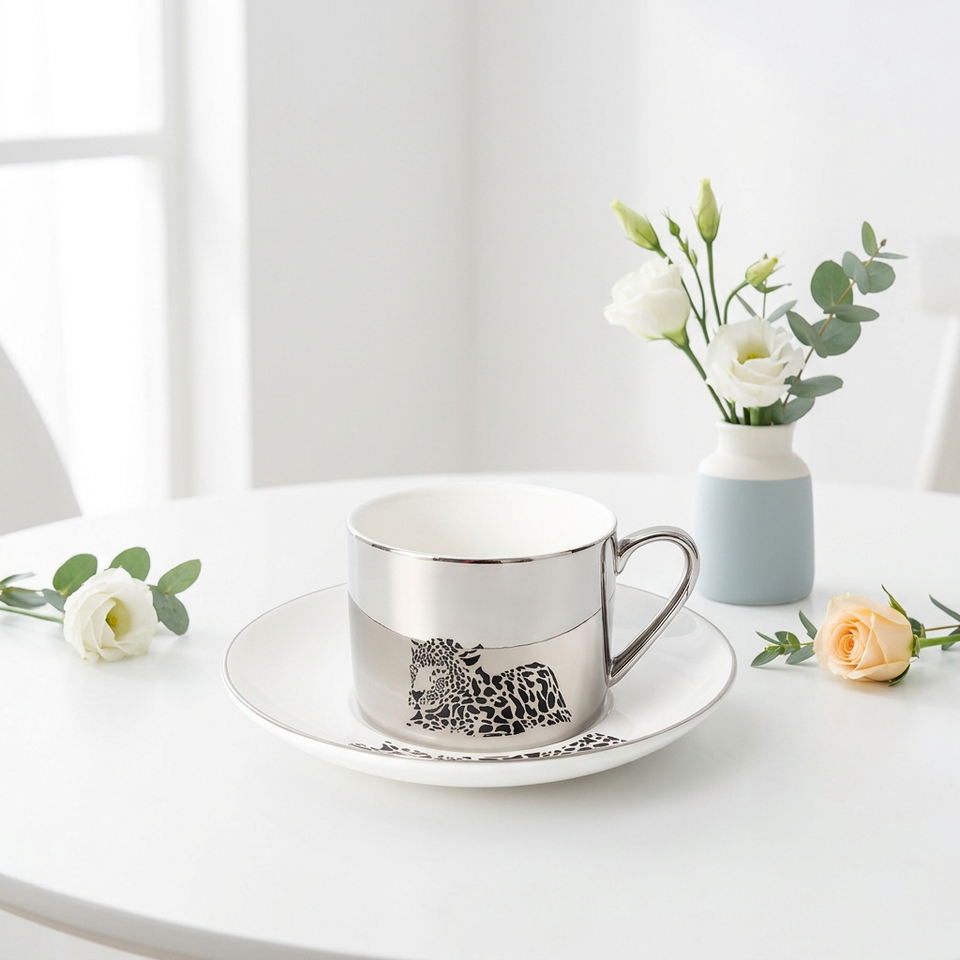 Juego de Taza y Platillo de Porcelana con Diseño Creativo de Espejo Electrochapado, Estilo Nórdico Europeo Minimalista para Café