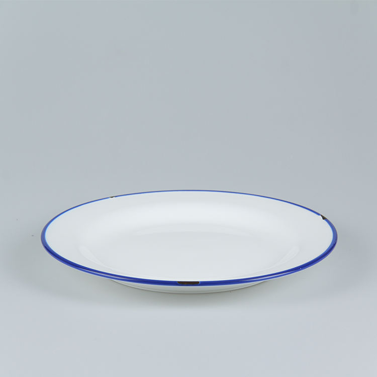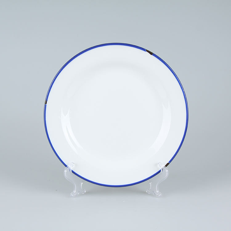 Plato Blanco de Cerámica con Diseño Creativo de Esmalte y Borde Azul, Platos de Porcelana Retro Esmaltados para Restaurante