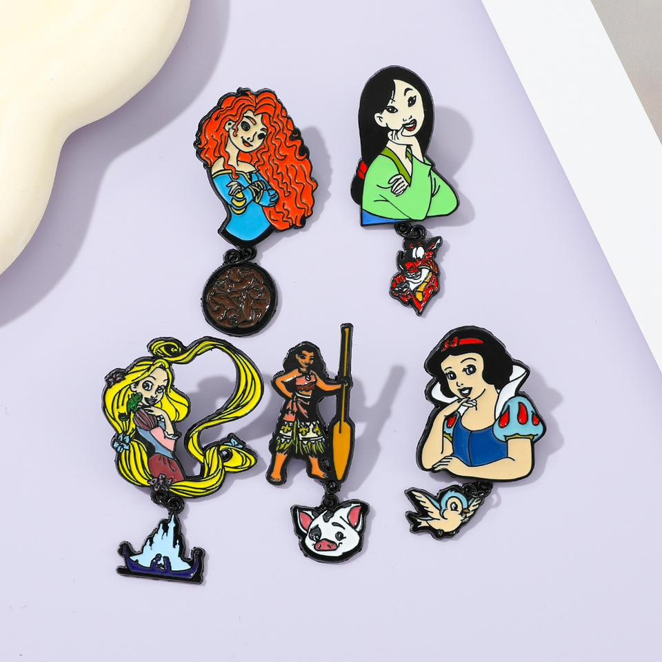 Creativo Europeo Americano dibujos animados princesa Metal insignia sirenita Blancanieves Mulan aleación broche oro grabado pintado