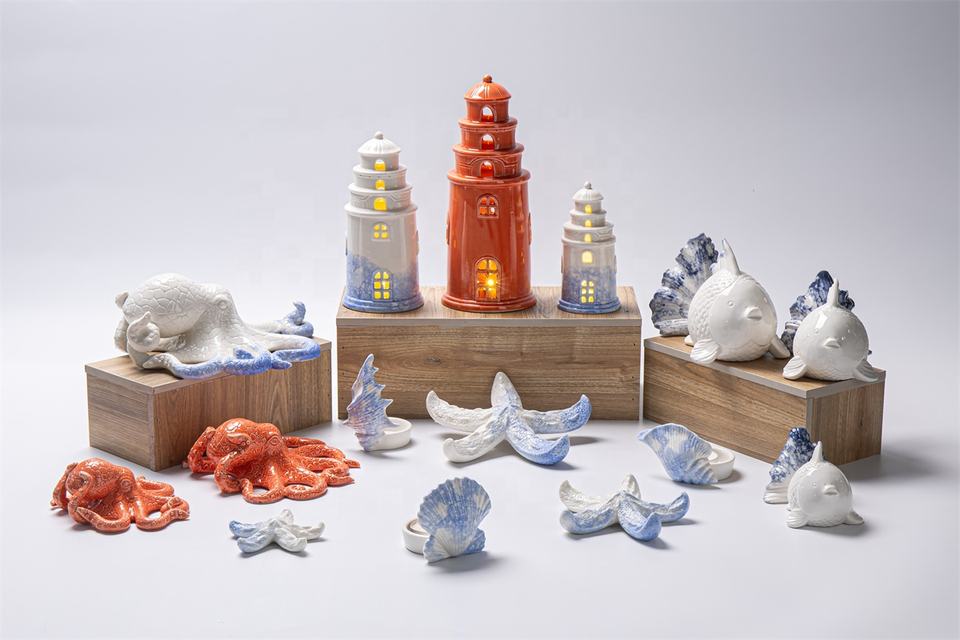 Nombre del Producto:Cerámica de peces oceánicos y caracolas de porcelana, caracol marino para el verano.