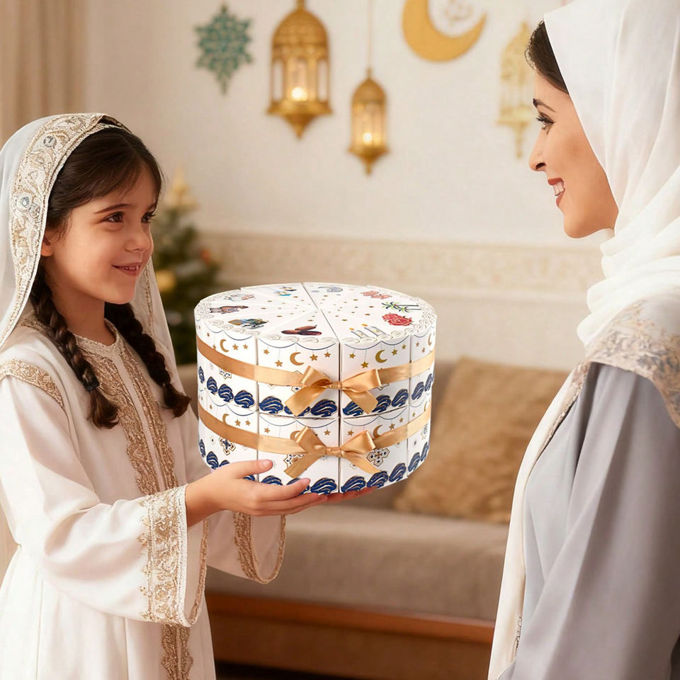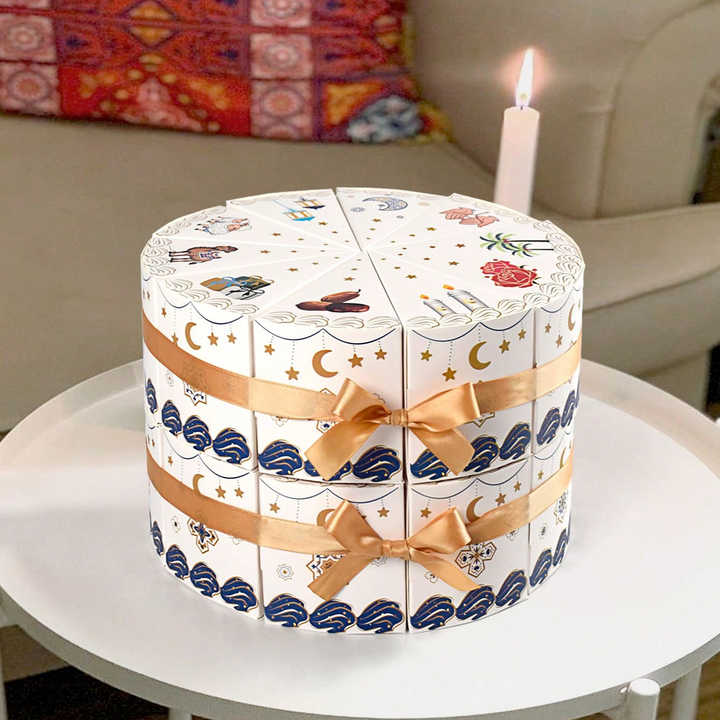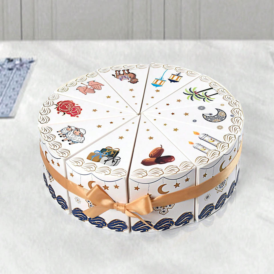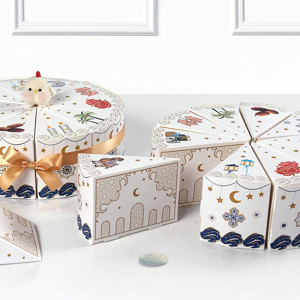 Cajas de Regalo Creativas en Forma de Abanico, Divisibles, Impermeables y Ecológicas, con Lazo Dorado, Tema Islámico, Forma de Pastel, Separables