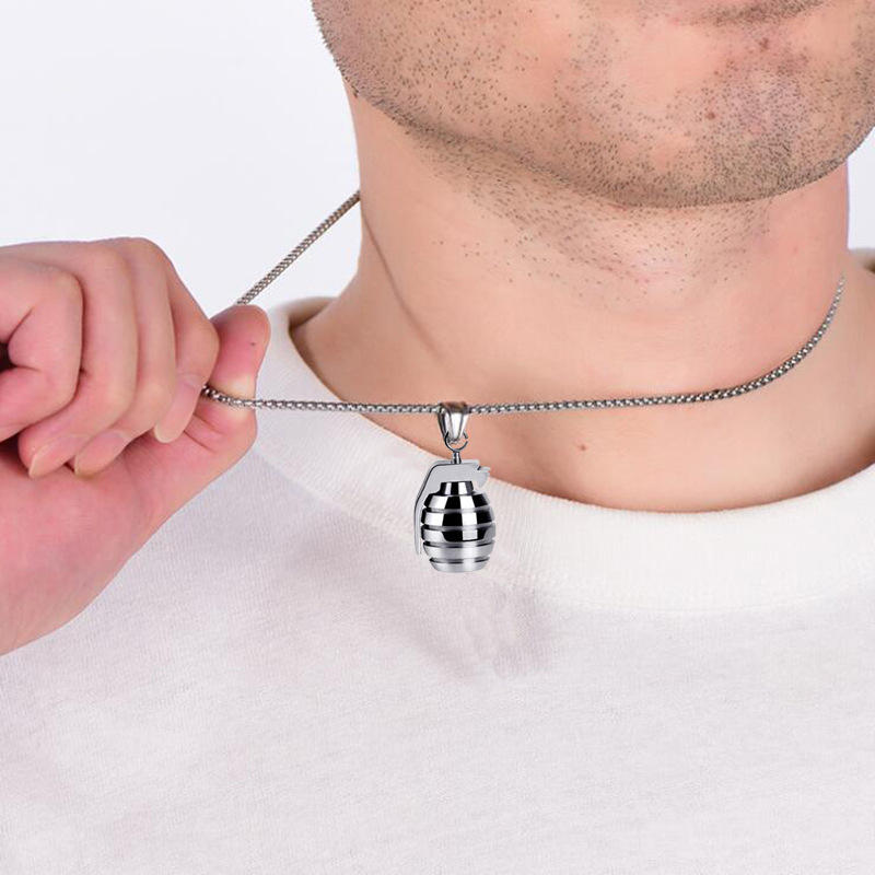 Cadena de acero inoxidable de moda creativa, collar con forma de Granada, collar con colgante de bombas de estilo Punk personalizado para hombres, joyería