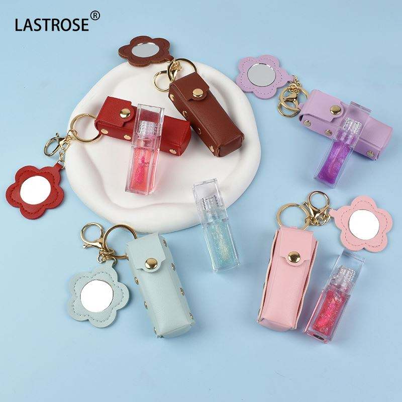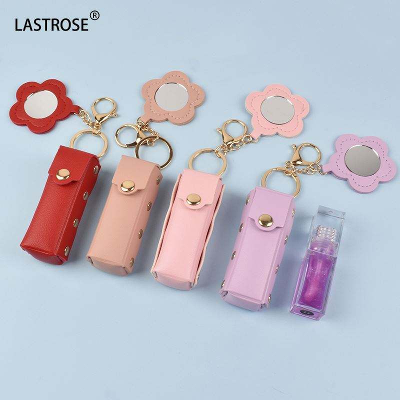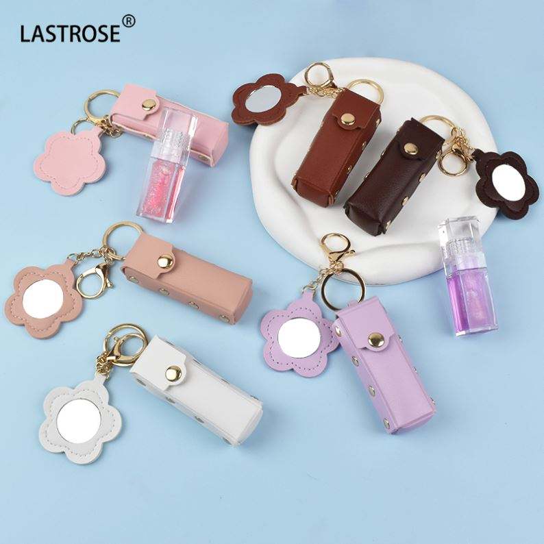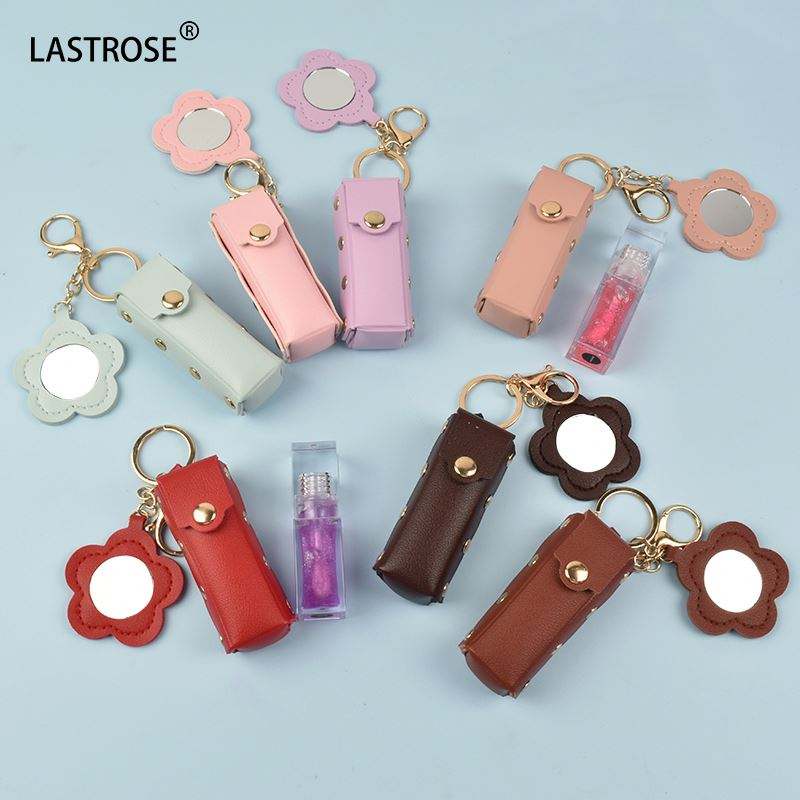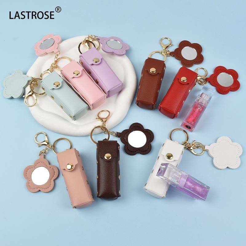 Estuche de Lápiz Labial Mini con Espejo en Forma de Flor Creativo y Llavero | Bolso de Moda de Cuero PU y Colgante de Llavero para Mujer