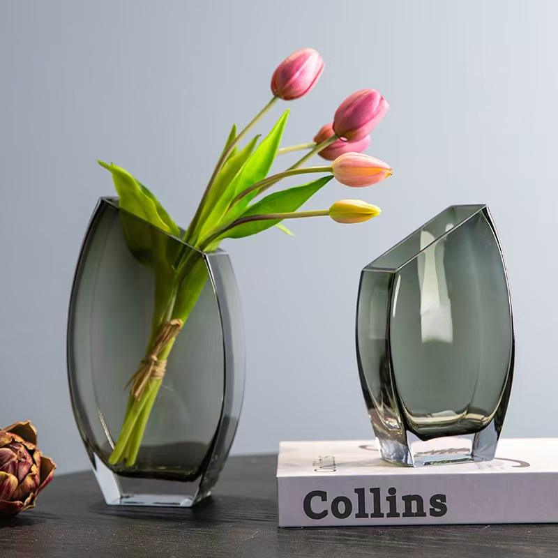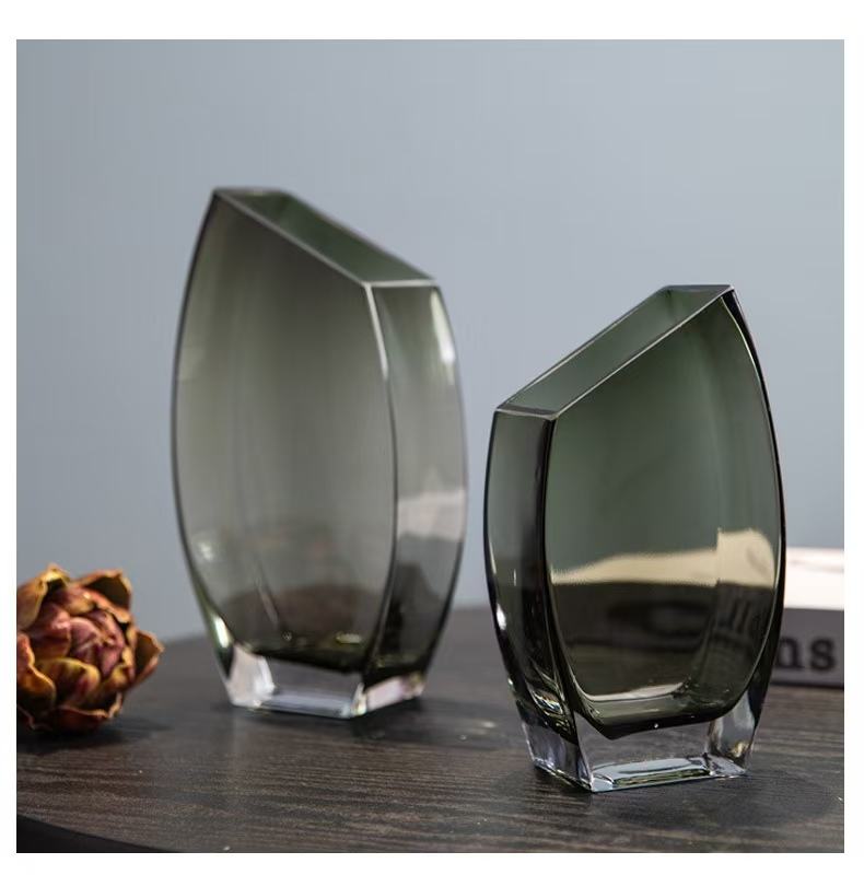 Jarrón de Vidrio Transparente Geométrico Cuadrado Creativo con Abertura Inclinada