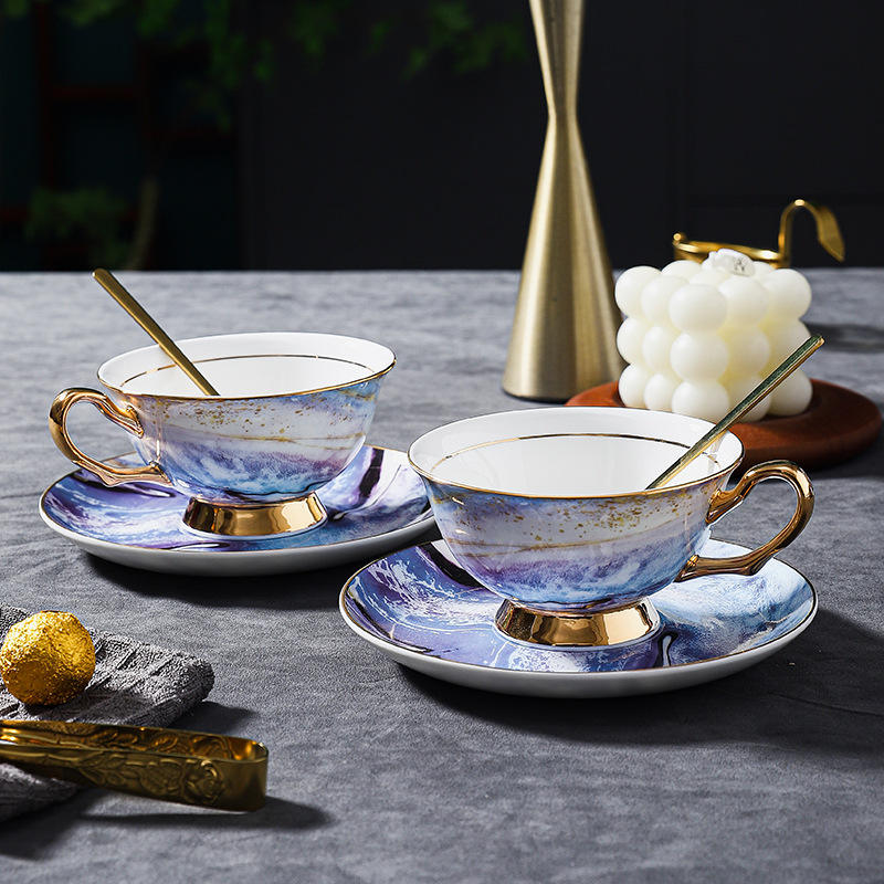 Caja de Regalo Creativa, Juego de Té y Café de Cerámica con Recubrimiento Electrolítico, Taza de Café, Porcelana Fina Elegante