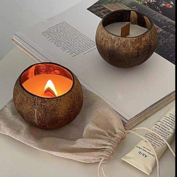 Regalo creativo Vela de Arte de cera de cáscara de coco-Velas de cáscara de coco-Vela de concha súper blanca
