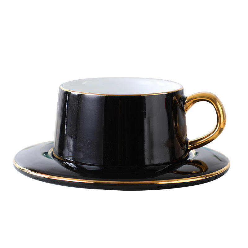 Taza de Cerámica Creativa de Estilo Europeo con Platillo de Lujo, Juego de Taza de Café Pequeña con Borde Dorado, Bandeja y Cuchara Incluidos