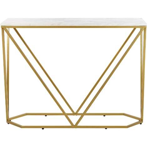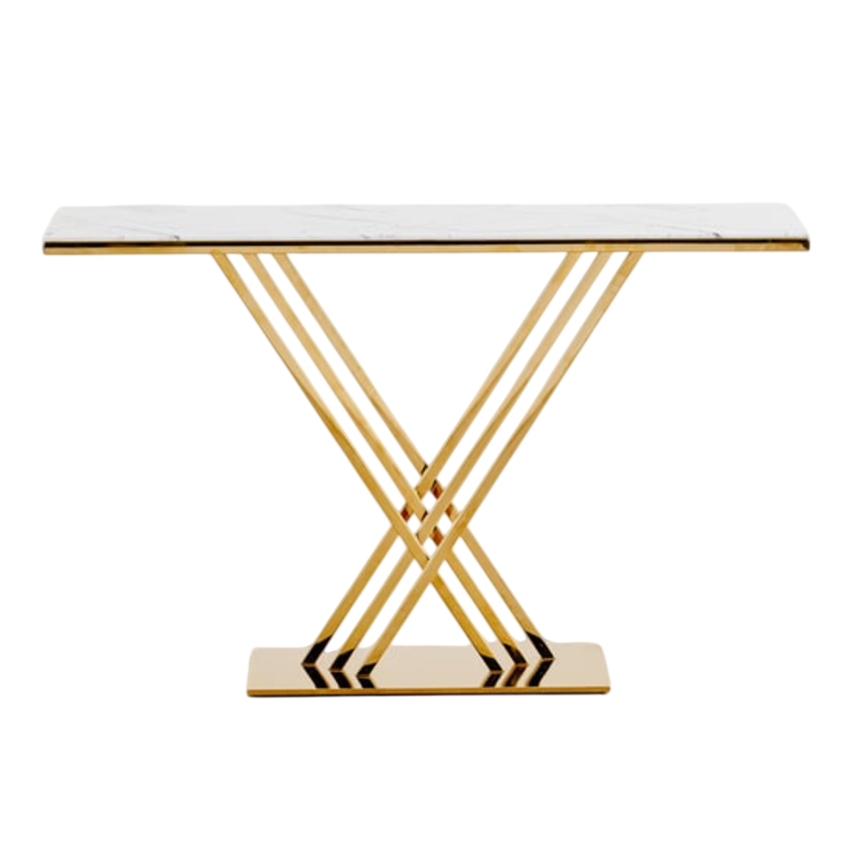Mesa Consola Creativa de Acero Inoxidable Dorado con Superficie Rectangular de Imitación Mármol, Mueble Decorativo para Entrada, Pasillo, Hotel y Hogar