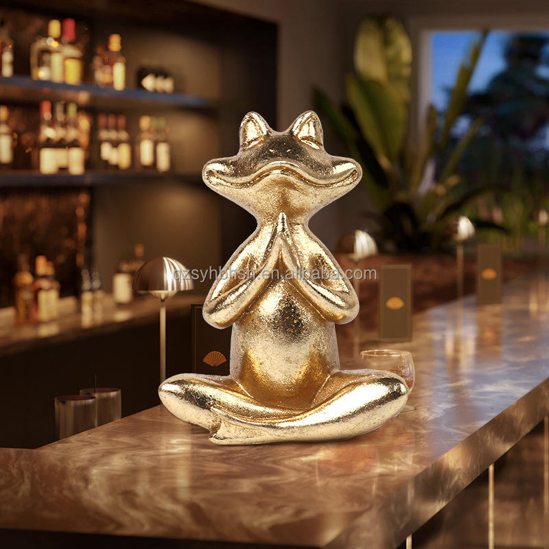 Creativo Golden Yoga Rana Ornamento vestíbulo sala de estar hogar meditación vino gabinete Decoración