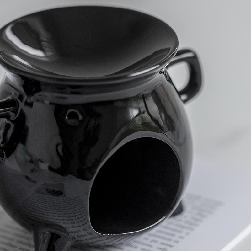Calentador de cera de cerámica en forma de caldero de bruja de Halloween, horno de aceite esencial de aromaterapia, quemador de cera fundida