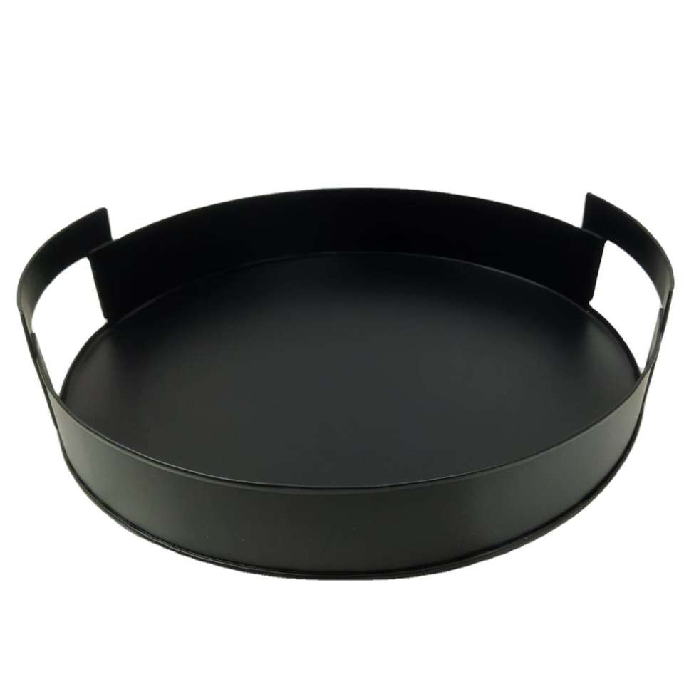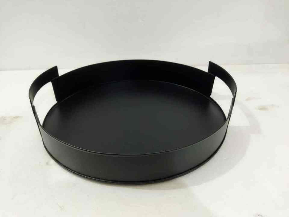 Hermosa bandeja de hierro redonda hecha a mano creativa con mango MOQ bajo Venta directa de fábrica del fabricante