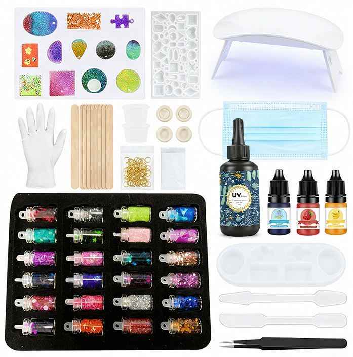 Kit de Resina UV para Manualidades, Transparente, de Curado Rápido, con Moldes de Silicona para Joyería, Colgantes y Pendientes