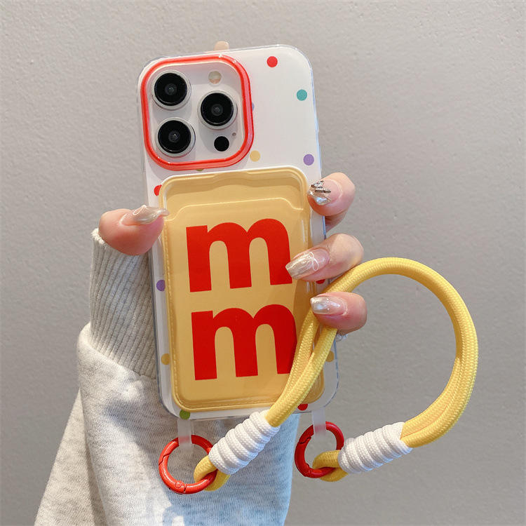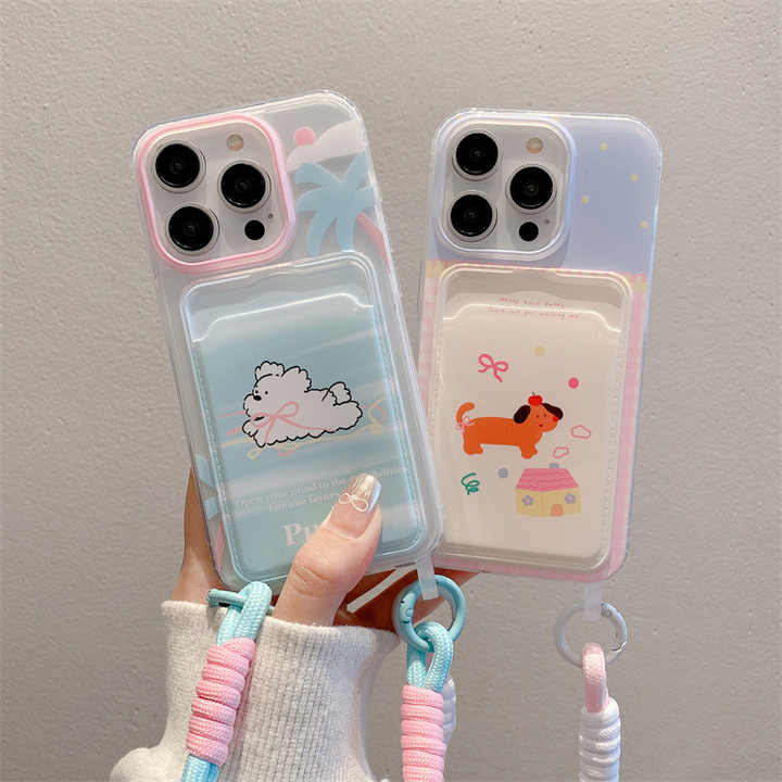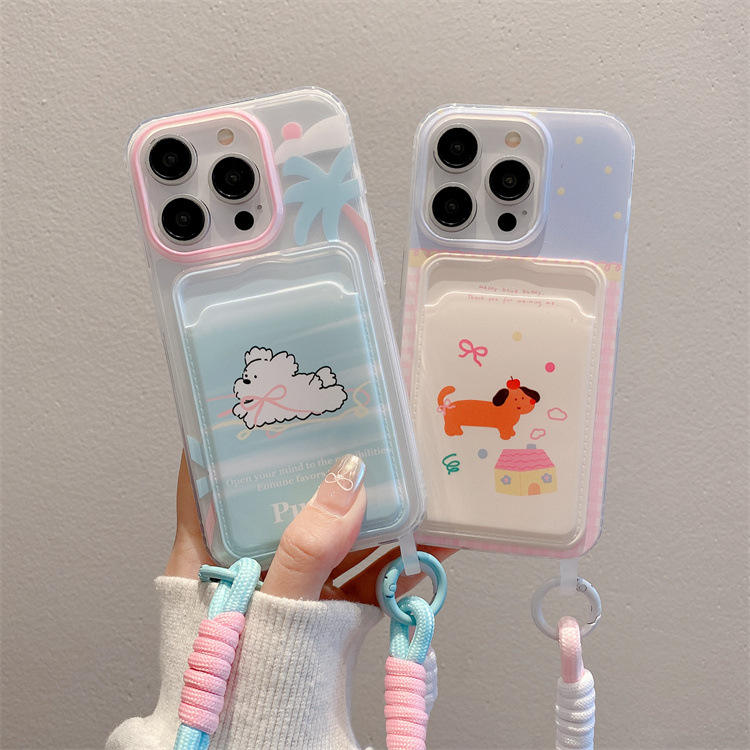 Funda creativa para tarjetas con cuerda colgante para iPhone 11/14, funda protectora de TPU con diseño de cachorro de dibujos animados, fundas para teléfonos móviles