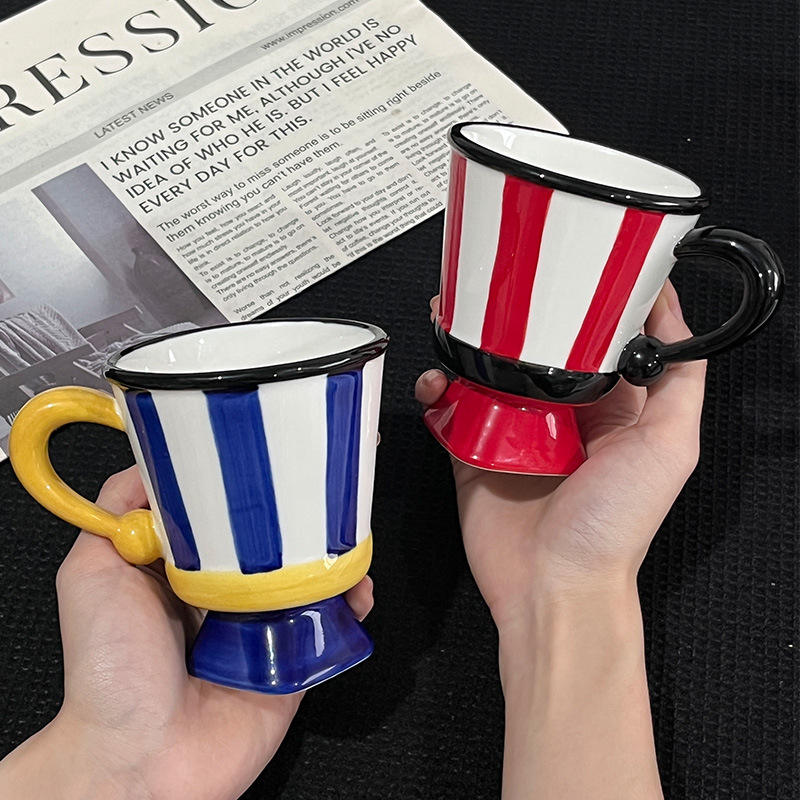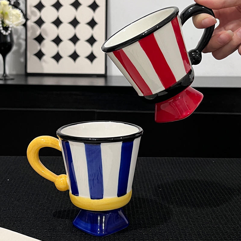 Taza de Café de Cerámica Creativa con Base Alta, Taza de Té Nórdica con Rayas Coloridas