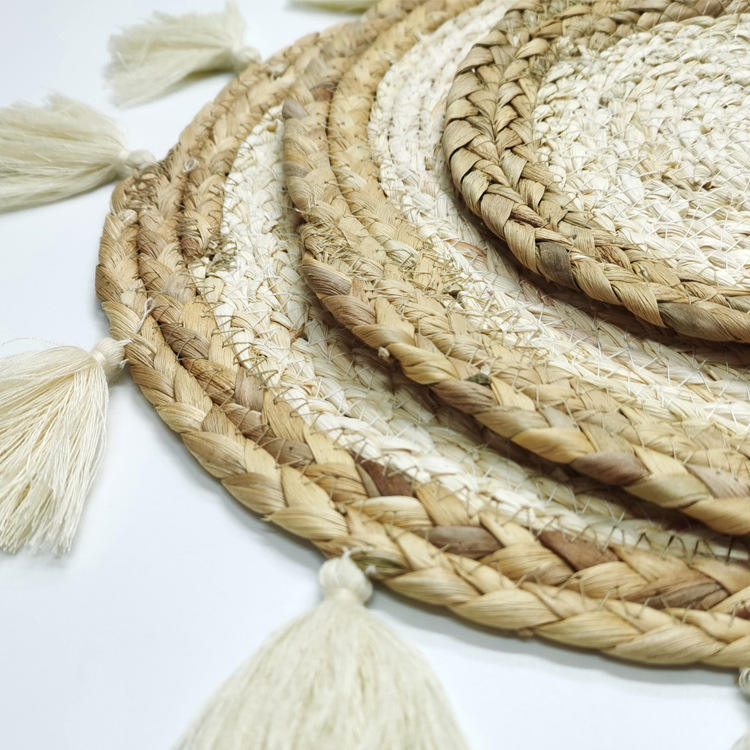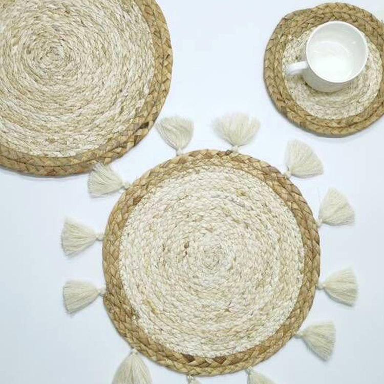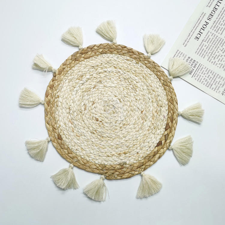 Mantel Individual de paja tejido para el hogar creativo, con aislamiento, hierba de Jacinto, piel de maíz, tapete de café, tapete con borlas