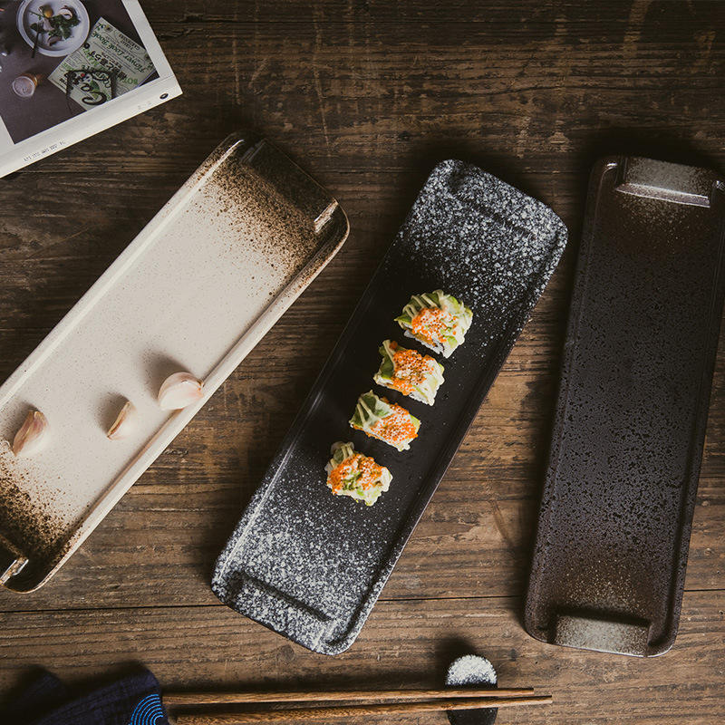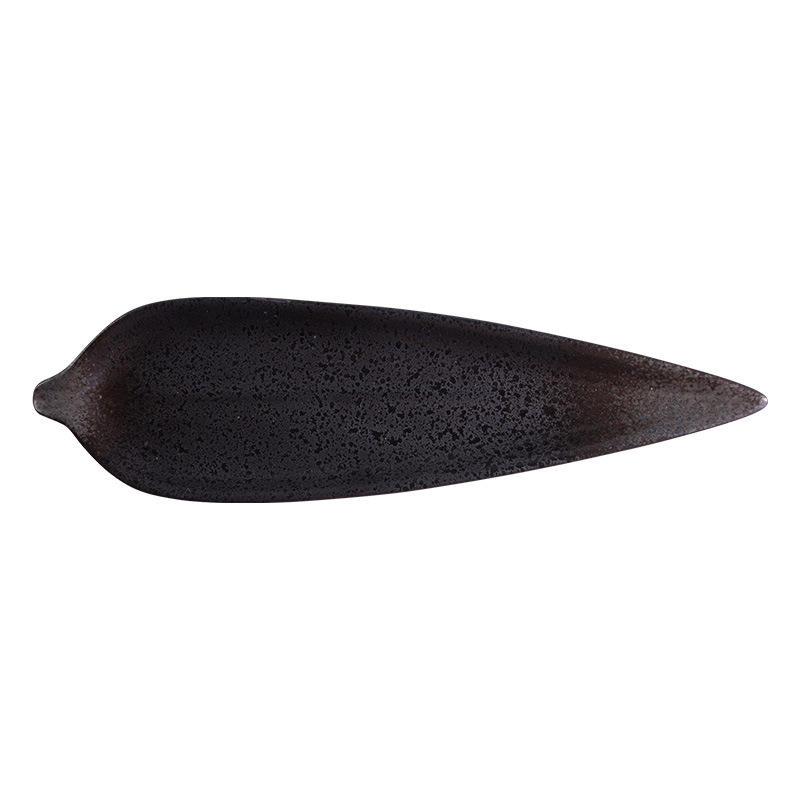 Plato de pescado de cerámica de estilo japonés creativo, plato de sushi en forma de hoja de esmalte verde azul ecológico para uso en restaurante