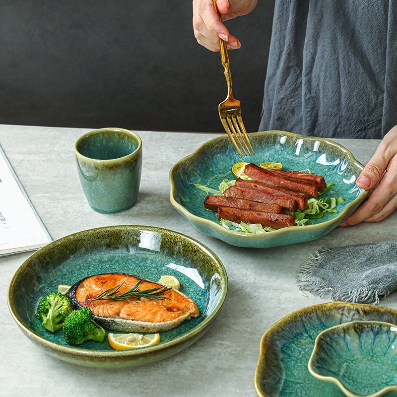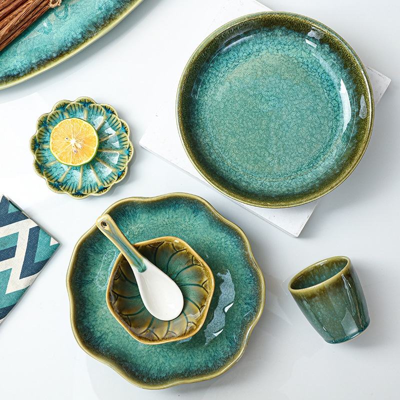 Plato de Cerámica Estilo Japonés Creativo, Juego de Cucharas, Juego de Vajilla de Lujo Retro PARA EL Hogar y Hotel
