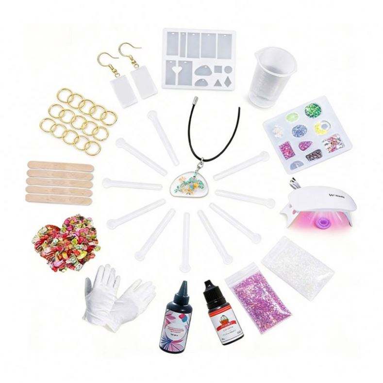 Kit de Silicona para Creación de Joyería, con Silicona Transparente de Curado Rápido, Lámpara UV, Moldes para Aretes y Colgantes, Brillo