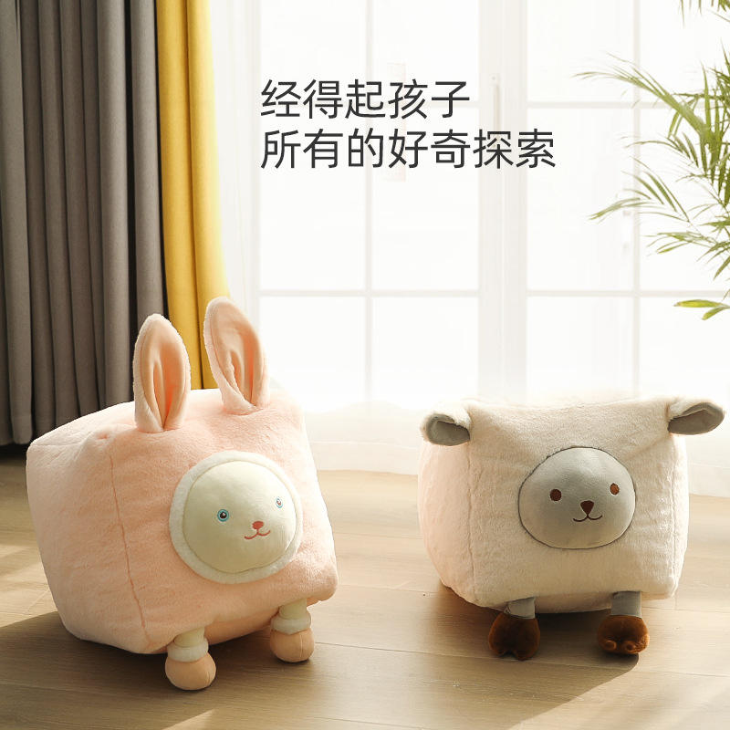 Taburete de conejo creativo para niños, silla portátil de felpa rosa, asiento cuadrado para niños, uso en interiores