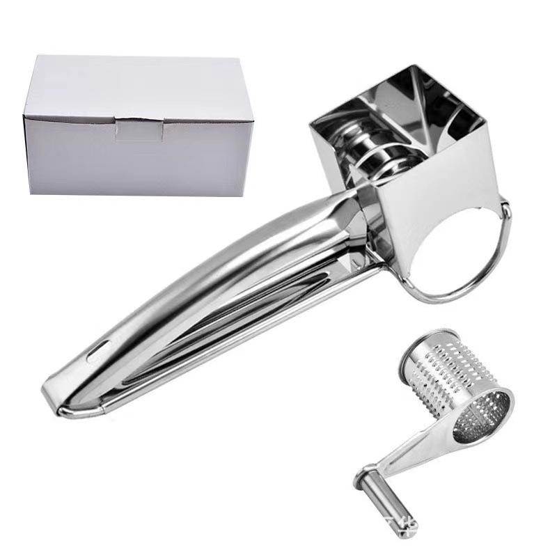 Rallador de Queso Manual de Acero Inoxidable para Cocina, Dispositivo Giratorio Metálico Pre-fabricado, Herramientas para Queso