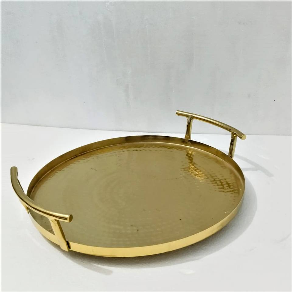 Bandejas de Servir de Latón VISHAL HANDICRAFT de Diseño Creativo y Moderno con Acabados Art Deco Elegantes para Uso Decorativo en el Hogar Contemporáneo