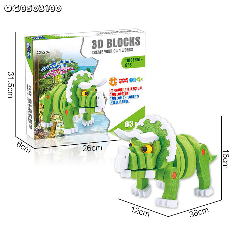 Juego de aprendizaje creativo para niños juguetes de desarrollo cerebral último 3D Triceratops Diy ensamblar dinosaurio modelo Eva rompecabezas