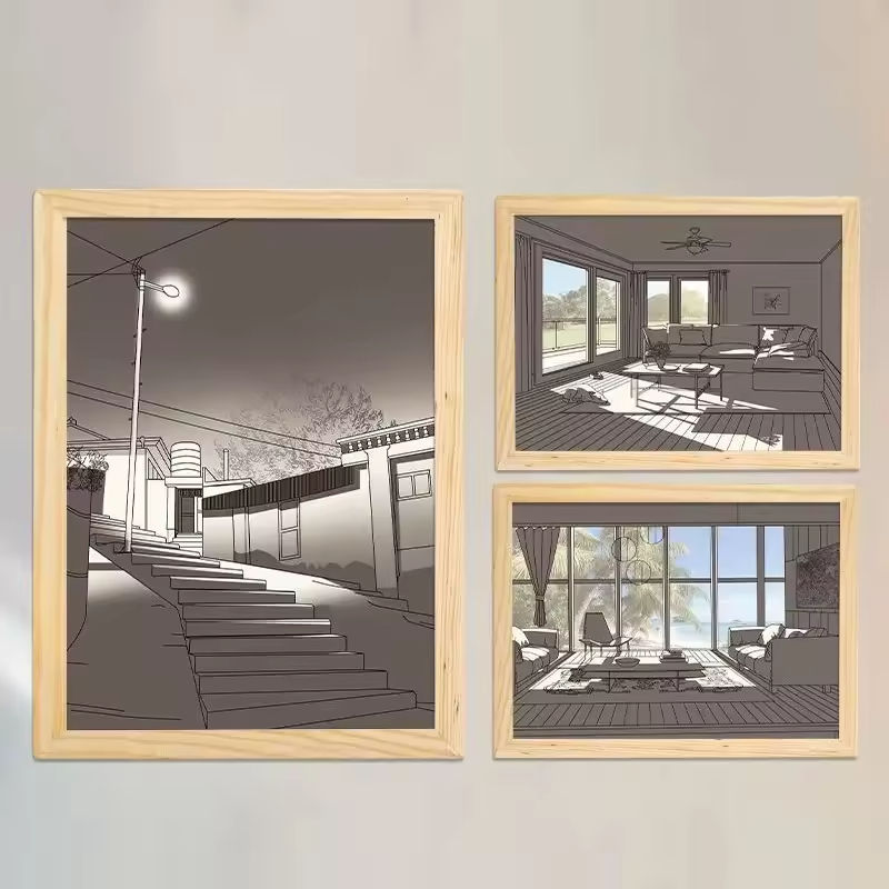 Lámpara Mural Decorativa para el Hogar Creative Life, Lámpara LED Recargable, Marco de Fotos con Diseño de Madera, Lámpara de Mesa con Luz de Dibujo
