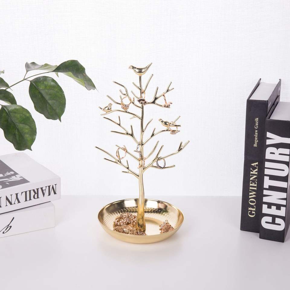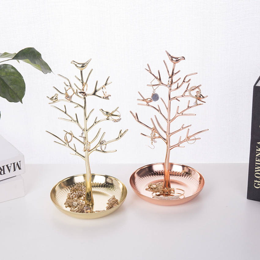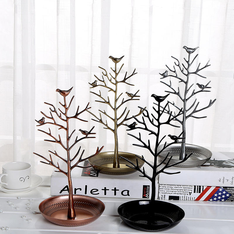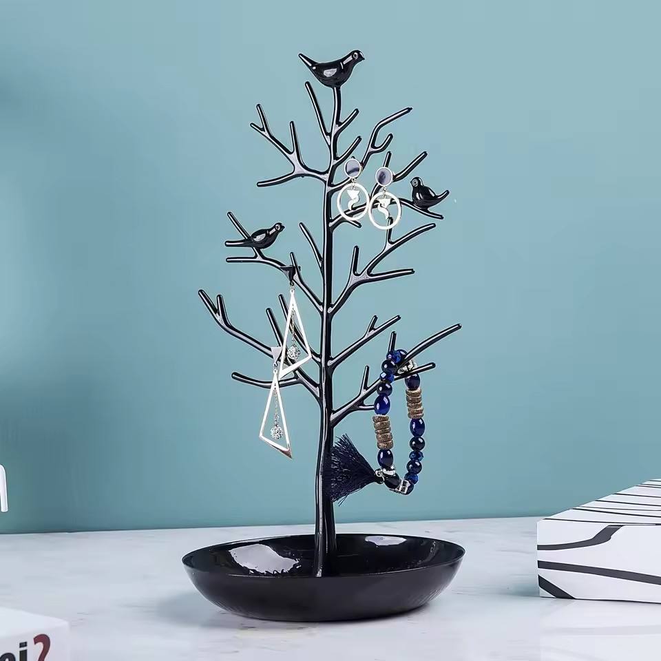 Expositor de Joyería Creativo con Diseño de Árbol y Pájaros Metálicos, Soporte para Pendientes, Anillos, Pulseras y Collares, Organizador de Escritorio y Mostrador