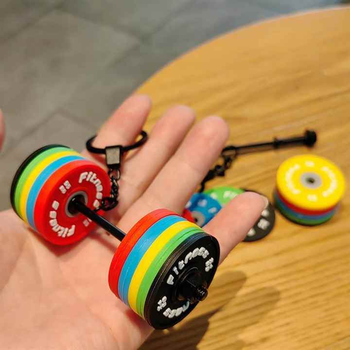 Llavero Creativo de PVC con Diseño de Mini Barra de Pesas, Colgante para Mochila Escolar, Regalo, Marca OEM, Hecho en China, Llavero de Levantamiento de Pesas