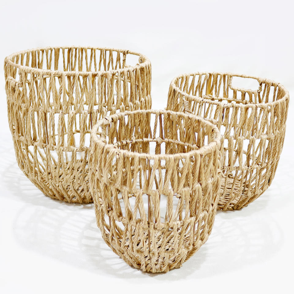 Nombre del producto:Conjunto de 3 cestas redondas de poli Ratán