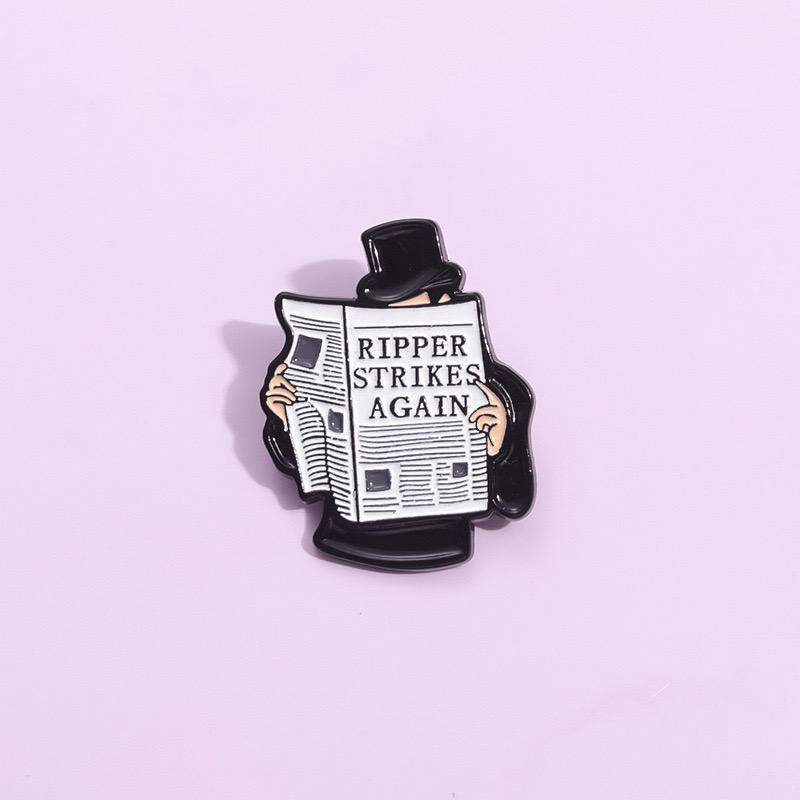 Broche de Metal con letras inglesas de personalidad creativa para leer el periódico, insignia con forma de hombre, Medalla decorativa, 100 Pines, técnica de fundición