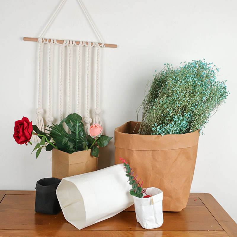 Bolsas de almacenamiento de papel kraft lavables, reutilizables, con personalidad creativa, maceta para flores de plantas verdes