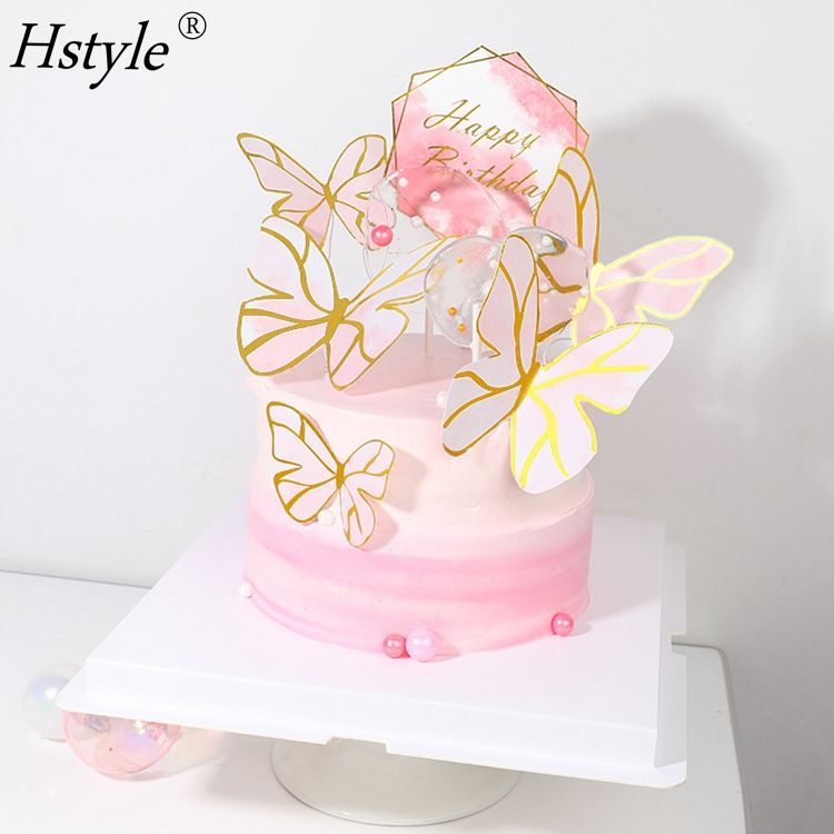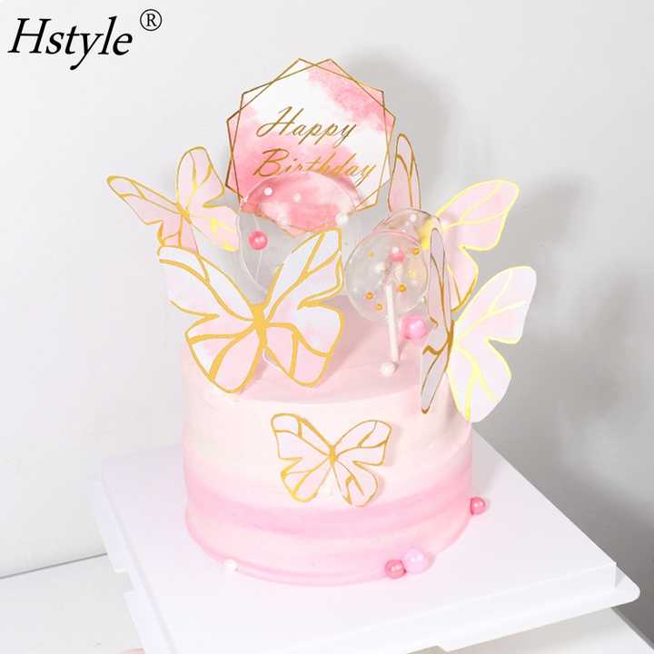 Decoración creativa de pastel de feliz cumpleaños con mariposas pintadas en rosa, fiesta de bienvenida para bebé, suministros para fiesta, barra de dulces PQ854