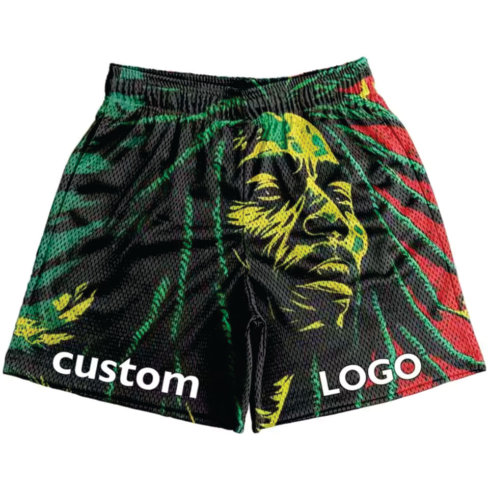 Pantalones cortos informales de malla cómodos de alta calidad con diseño de impresión creativa personalizada para hombre
