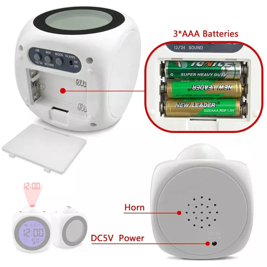 Reloj despertador de proyección creativa, equipo de proyección Led de pared/techo, reloj de temperatura parlante de voz Digital Lcd