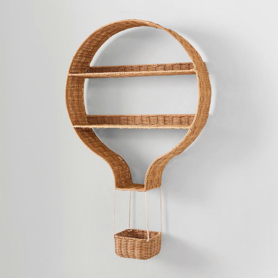 Estante de pared creativo de ratán con forma de globo, llamativo para decoración de cuartos infantiles, almacenamiento, exhibición y estilismo.