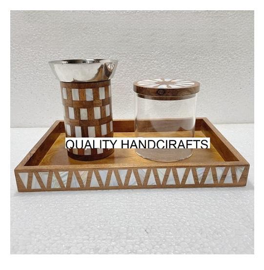 Wood Tray With Bowl Stand Acrylic Box And JarProduct name