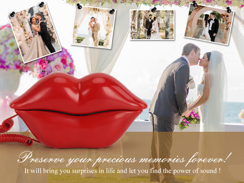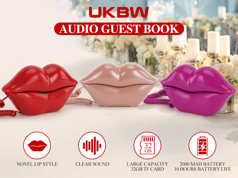 Grabadora retro en forma de labio rojo creativo, libro de visitas de audio