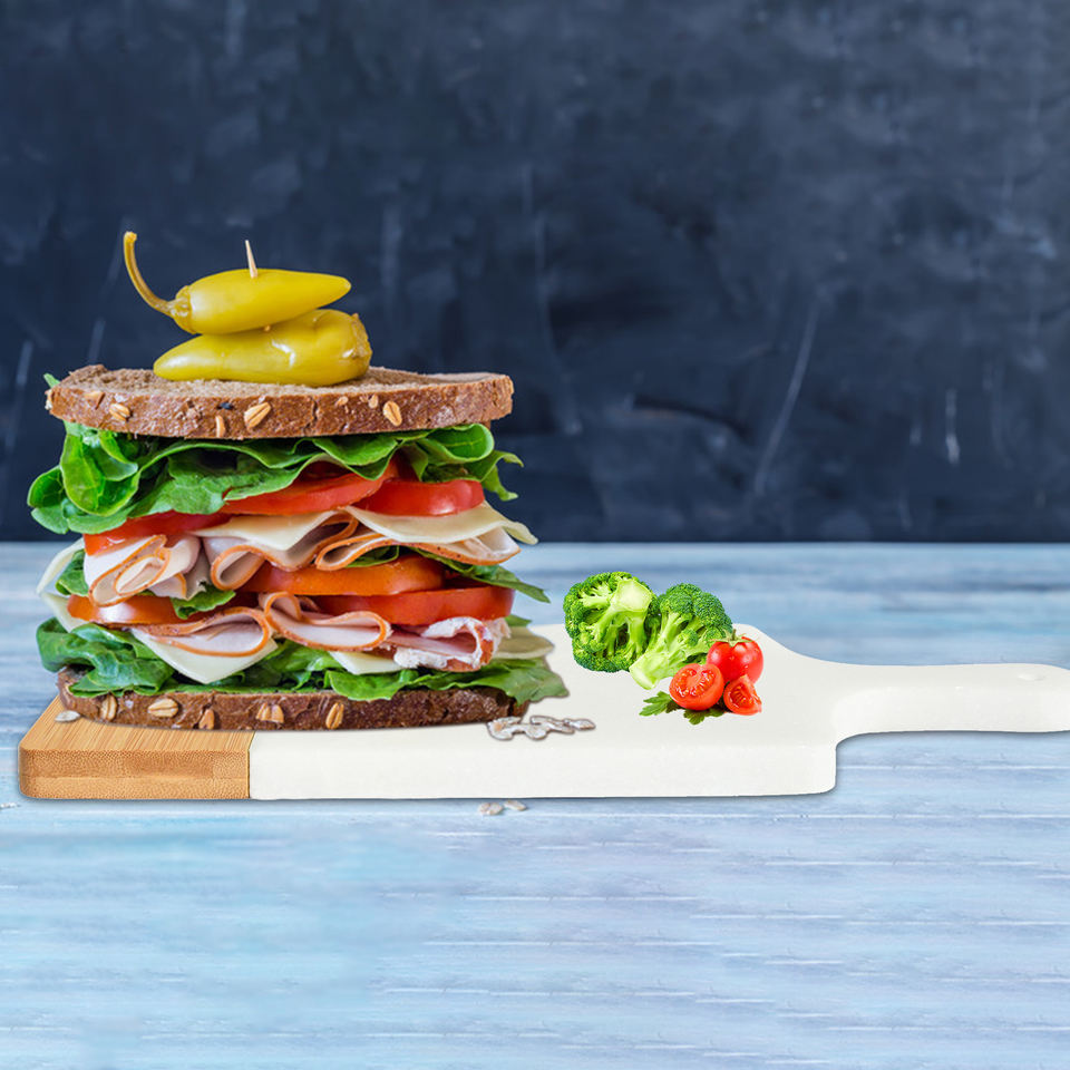Mini piedra de mármol blanco y madera de acacia, tabla para cortar queso, conejito de doble cara, superventas, rústico y creativo