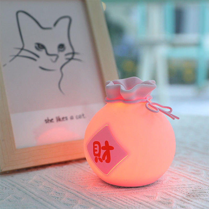 Bolsa de dinero con luz nocturna LED de silicona creativa, lámpara para dormir, colgante de pared para dormitorio, que implica riqueza y buena suerte