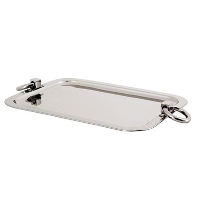 Bandeja de servicio de metal con acabado plateado creativo Bandeja de servicio de hotel de restaurante decorativa hecha a mano con asas laterales
