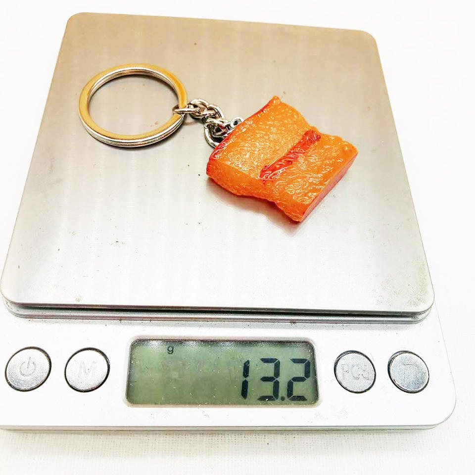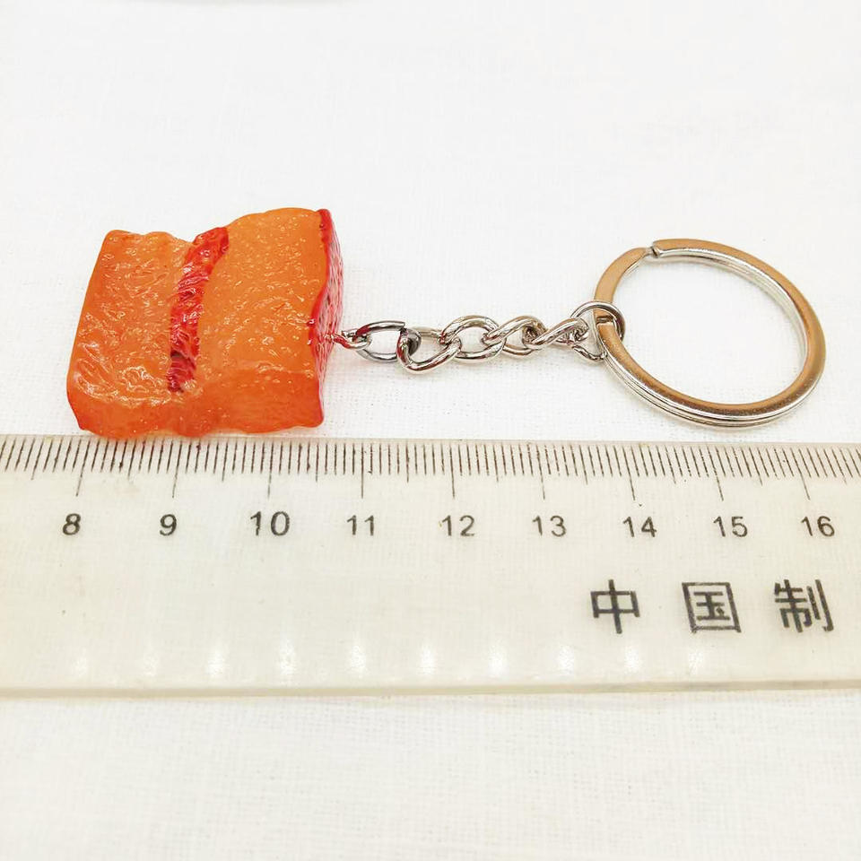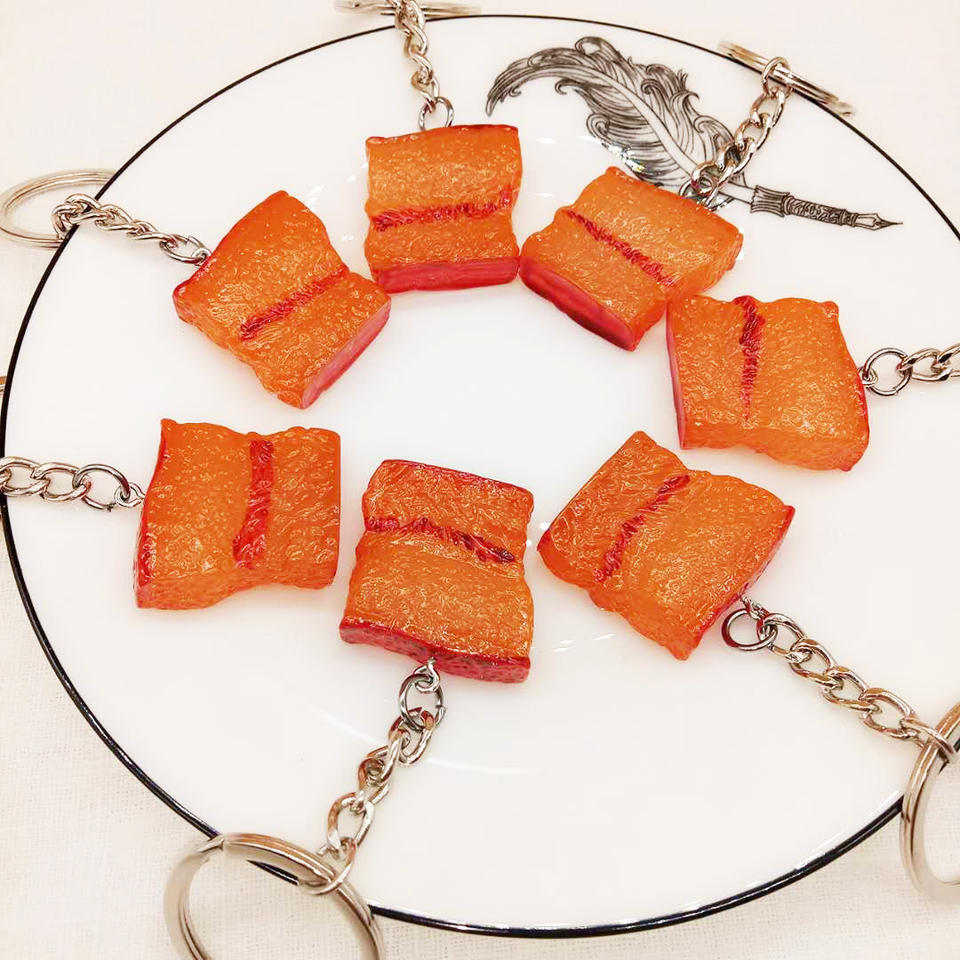 Simulación creativa de comida llavero de resina de goma suave regalo llavero estofado vientre de cerdo comida modelo colgante 3D llavero