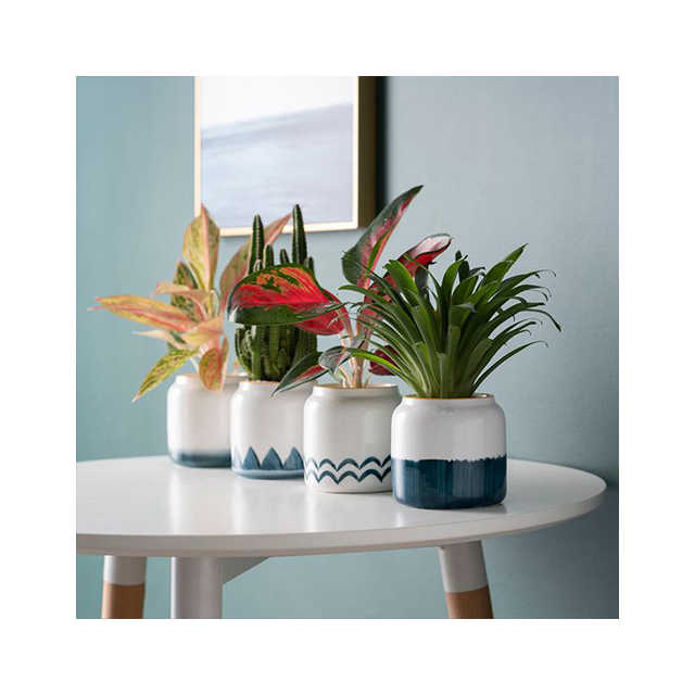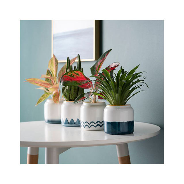 Creativo pequeño Arte Abstracto Circular pintado a mano decorativo interior suculenta planta verde maceta de cerámica para jardín al por mayor