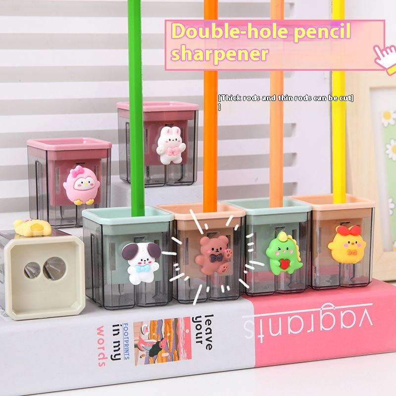 Papelería creativa para estudiantes de mano al por mayor Sacapuntas de doble agujero de dibujos animados