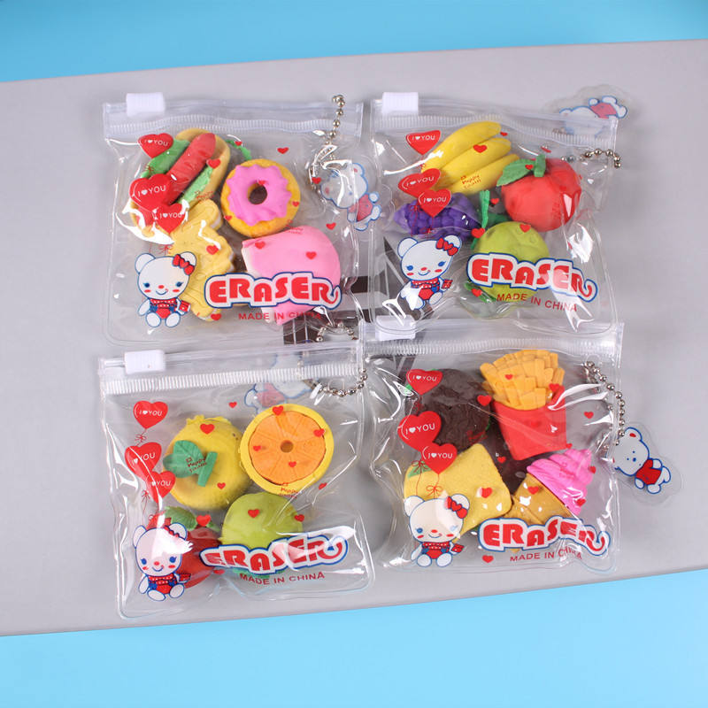 Creativo estudiante premios fruta KFC cremallera bolsa borrador pequeño plástico papelería regalo para niños