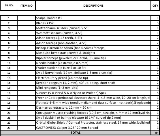Nombre del Producto:Juego de Instrumentos Quirúrgicos
