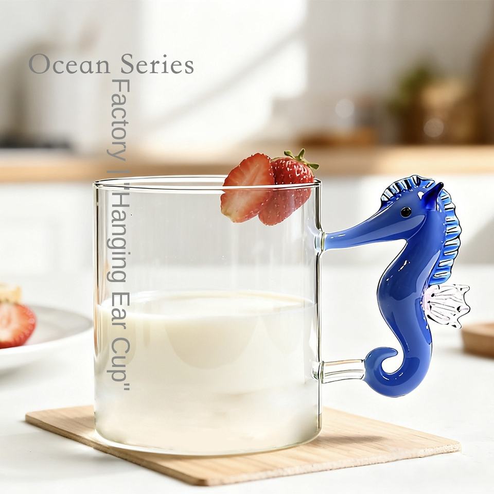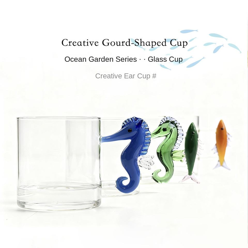 Vaso de Vidrio Creativo Tridimensional con Forma de Animal Marino, Asa y Pajita, Diseño de Animal de Dibujos Animados, Apto para Lavavajillas y Microondas, Marca DLT