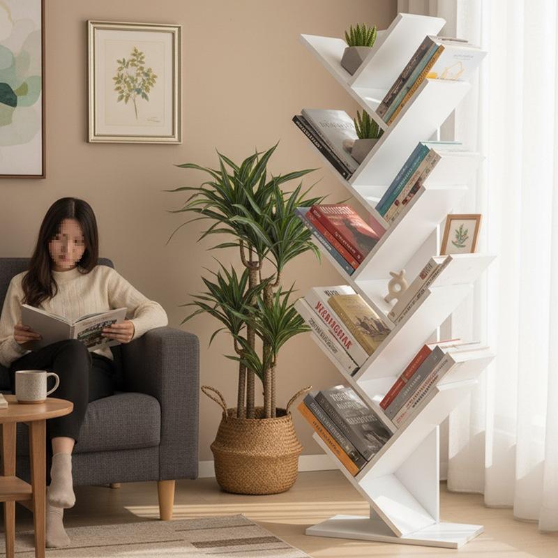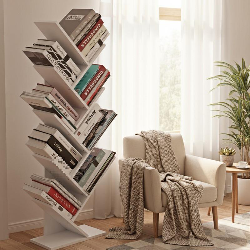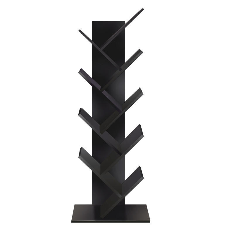 Estantería creativa con forma de árbol, estantería de almacenamiento poligonal para sala de estar, material de tablero blanco y negro